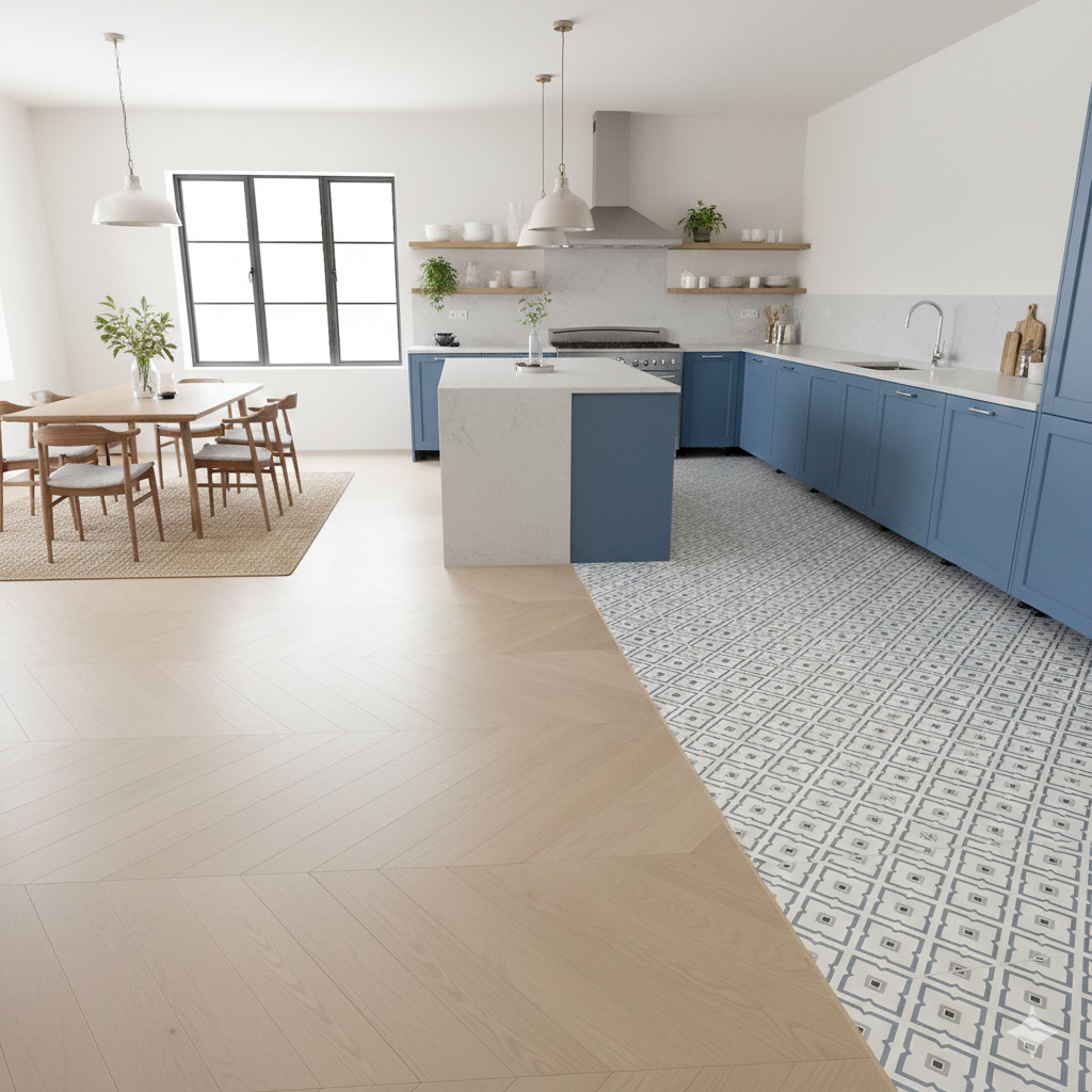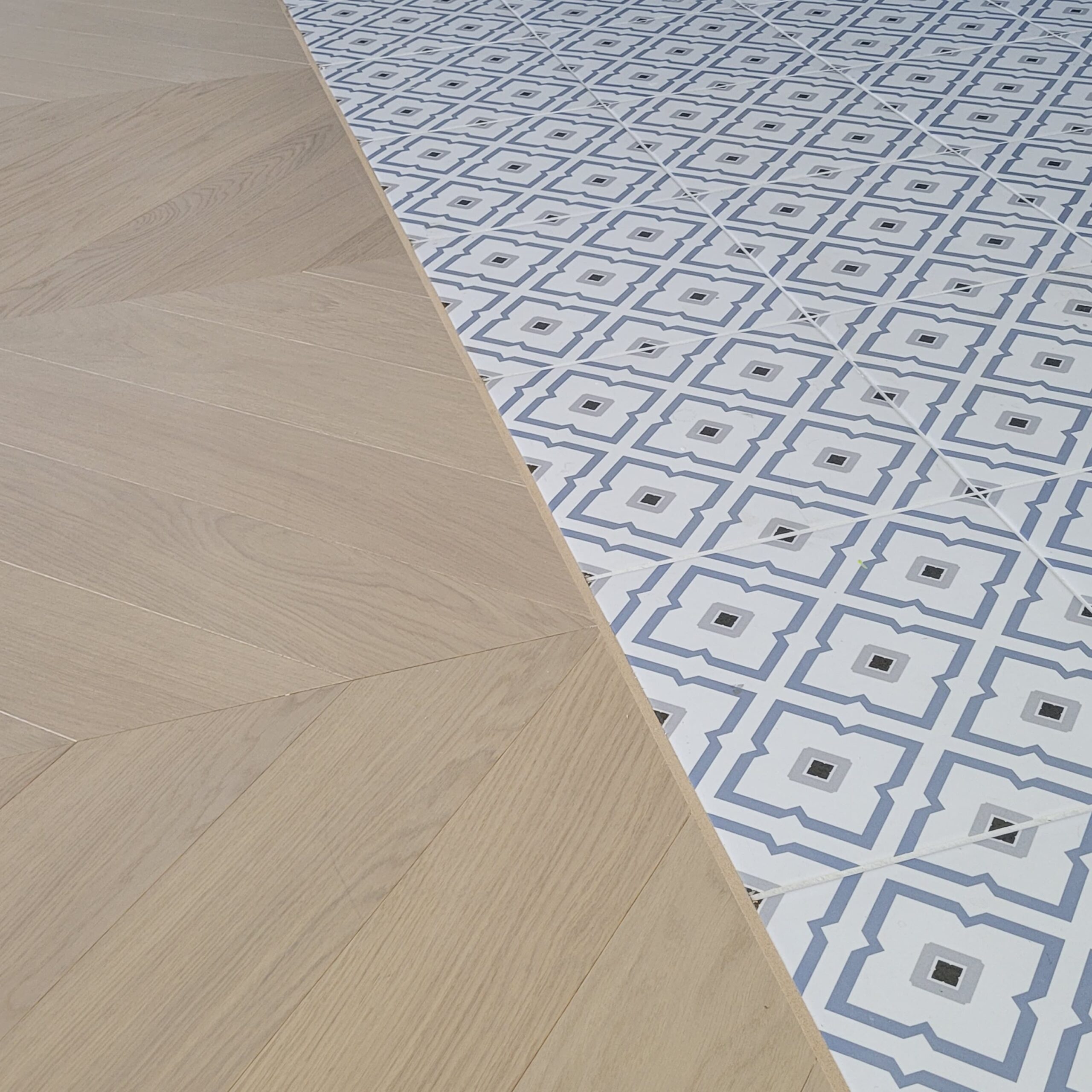 - Raumwirkung: Das 45°-Winkel-Design (Französisches Fischgrät) streckt den Raum optisch und sorgt für eine fließende Tiefenwirkung.